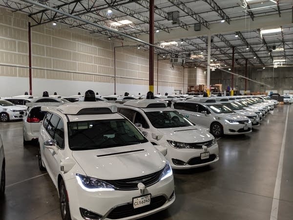 “We’ve outfitted [our Chrysler Pacifica hybrids] with the Waymo hardware and software that runs our self-driving fleet,” Garff said. “We’re in the hundreds of cars across all our operations, so you can see we have lifts and the type of tools and systems you’d see in a normal garage.”